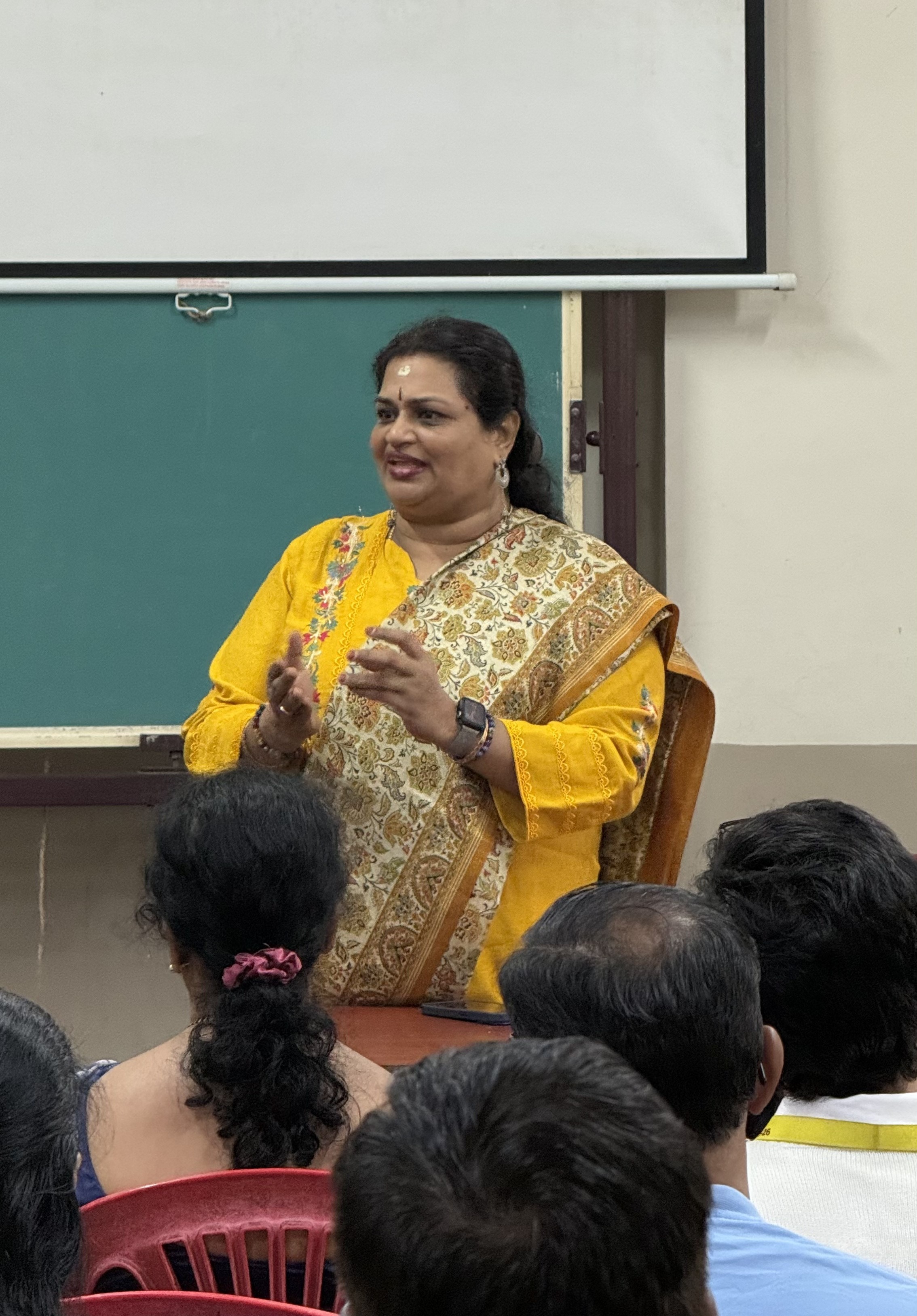 Dr. Viji Kannan addressing parents & students for the Result Distribution