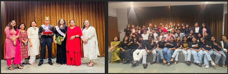 BFM welcome party was held on 30th July 2025 inside auditorium from 9.30 AM onwards. Picture has faculties along with Mr. and Miss Iconic and Iconica from FYBFM along with other participants
