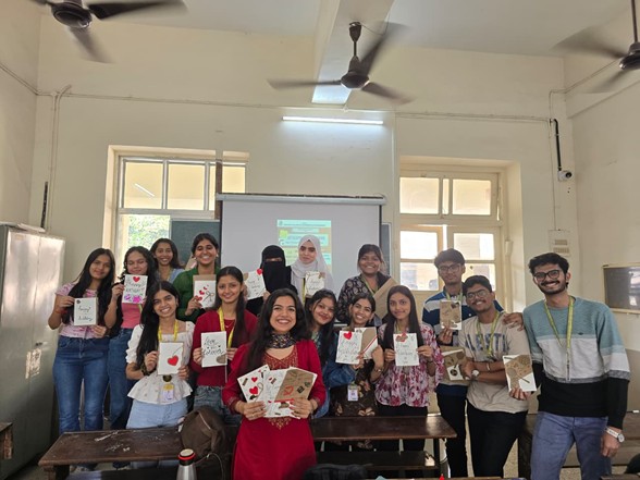 Guided by Ms. Dhanvi Mehta, this activity encouraged students to convert used brown paper bags into aesthetic handmade greeting cards which are marketable products while learning optimum use of resources. The event was conducted to encourage entrepreneurial skills among students.